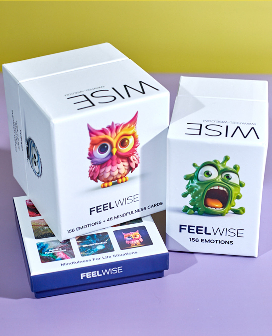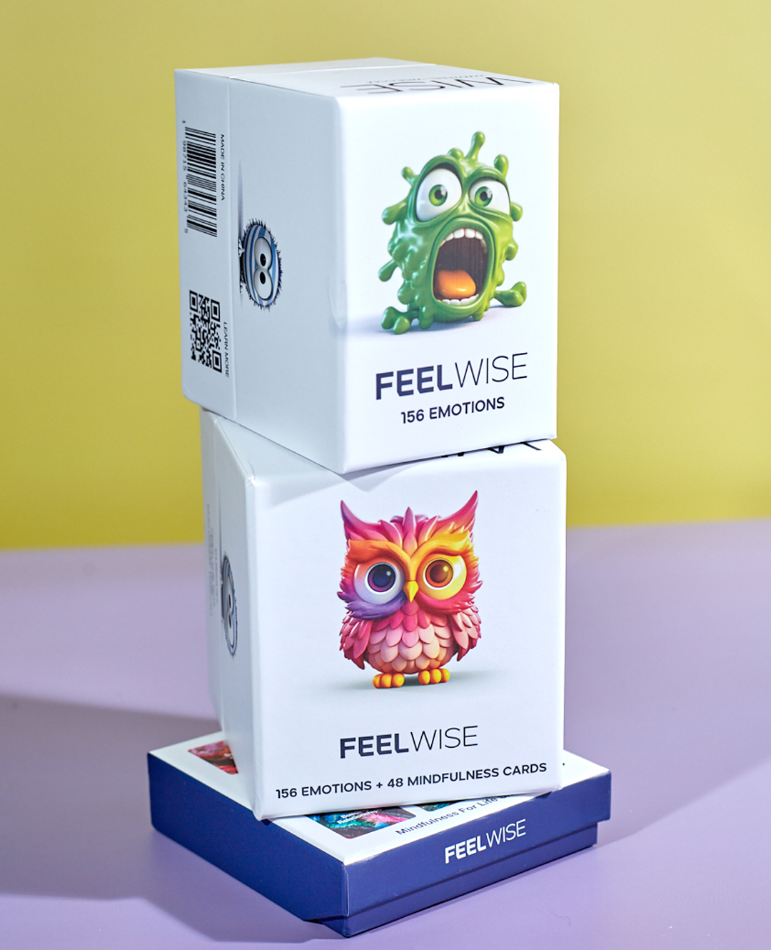 You get the full FeelWise system: 156 emotion cards, 48 mindfulness technique cards, emotion wheels, the journal, and stickers. This set helps you see your feelings, understand them, and choose simple steps to calm your body and your mind. It’s everything you need to build strong emotional skills at home, in class, or in therapy.