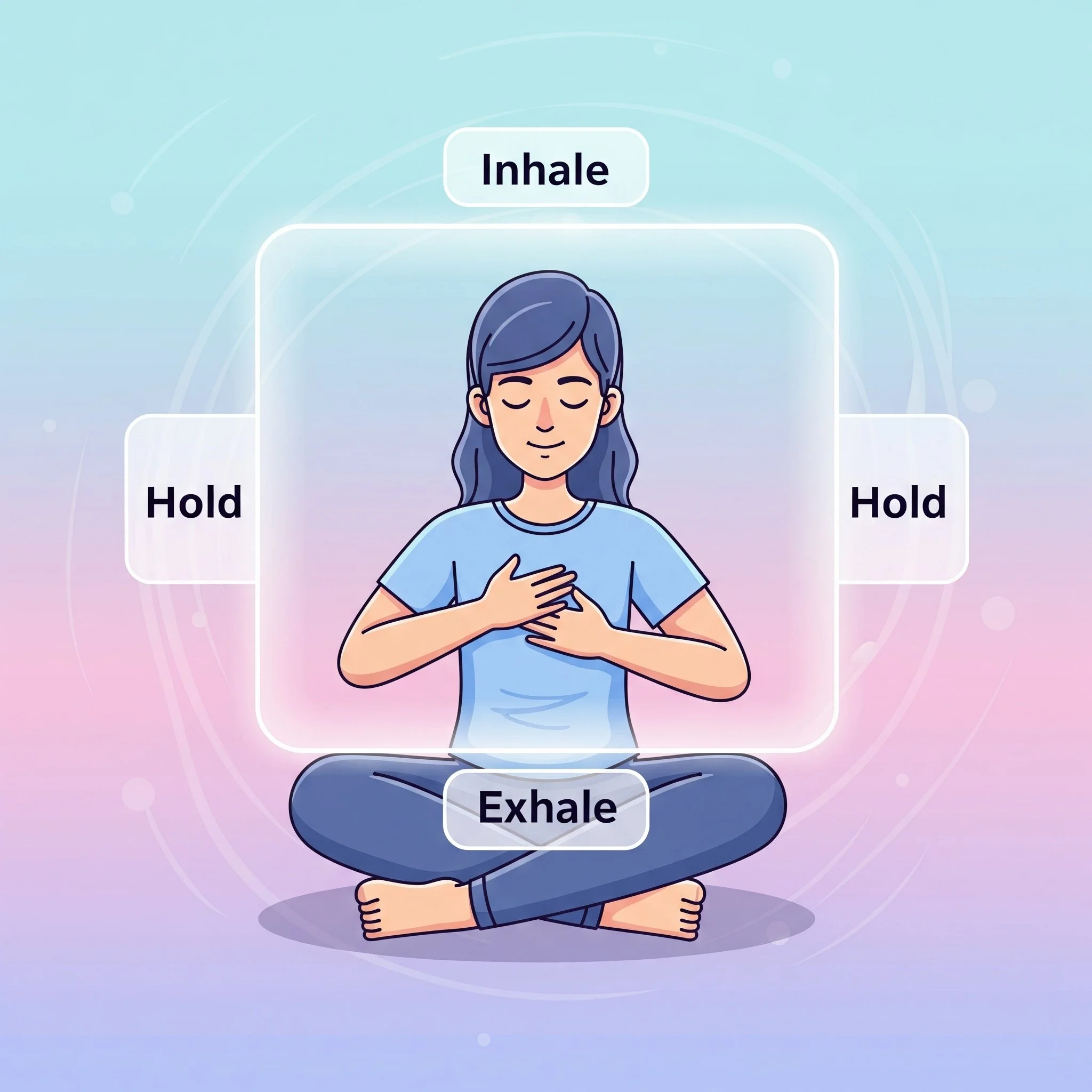 Focus attention on the breath or the sensation of feet on the ground. Box breathing is a simple yet effective practice: inhale for four counts, hold for four, exhale for four, and hold again for four. Repeat gently. This slows the heart rate and helps the mind reconnect with safety in the present moment.